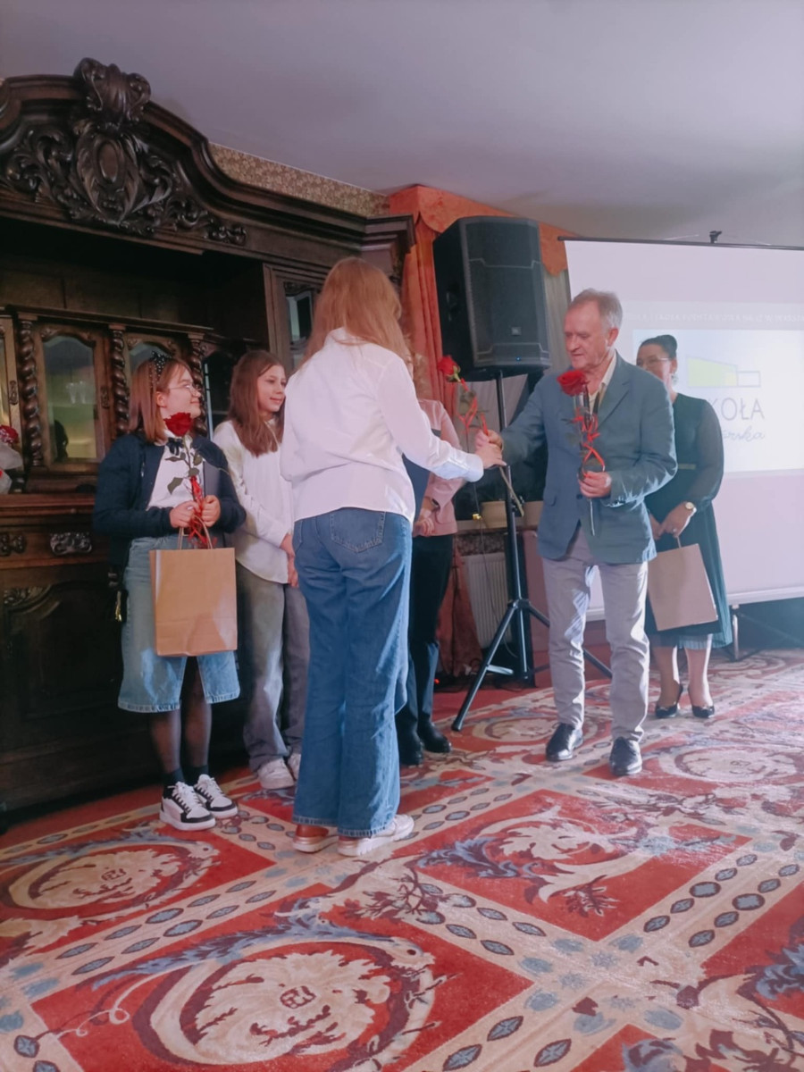 Z ramienia szkoły pojawiły się trzy wolontariuszki z klasy 6a - Kornelia, Hania i Nina, które godnie reprezentowały całe koło. Była także pani dyrektor oraz koordynator wolontariatu, pani Dominika. Podziękowania wręczył pan burmistrz, obecna była jego zastępczyni i kilka osób, które na co dzień wspierają rozwój działań społecznych.